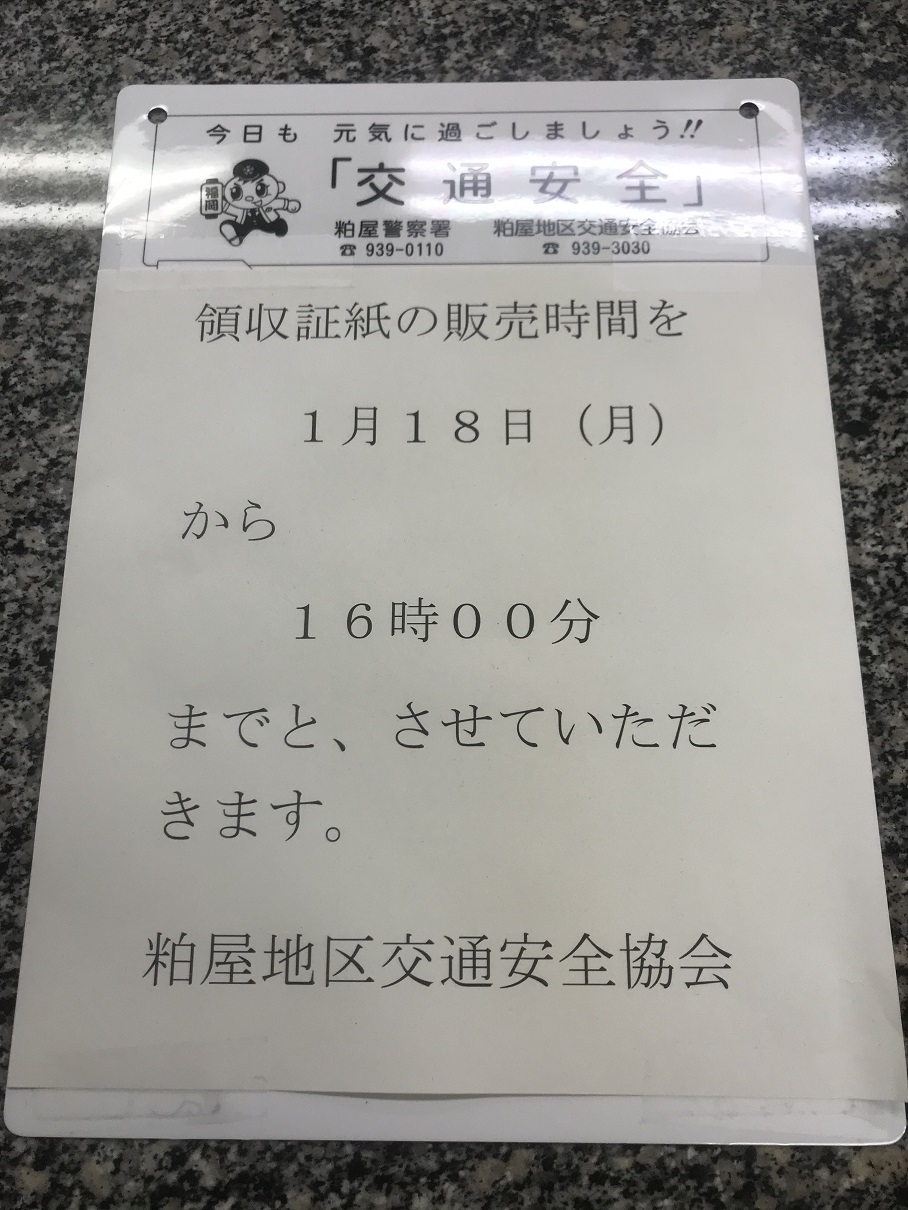 ☆福岡県領収証紙の販売時間の変更について