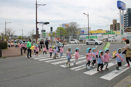 北九州市小倉南区中曽根、曽根ひかり幼稚園と保育園児のパトロール隊約70名が、