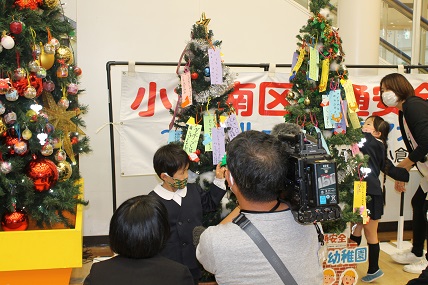 交通教室を実施、また むつみ幼稚園児57名が作成した交通事故防止を祈る交通安全短冊を、クリスマスツ