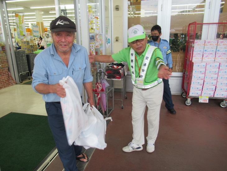 7月10日(水)午後4時00分からスーパー「アスタラビスタ黒木店」においてセーフティステーションが行われ、交通安全協会黒木支部員が参加協力を行いました。