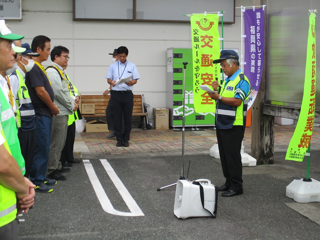 セーフティステーションには、八女警察署、八女市、広川町、八女交通安全協会、福岡県トラック協会八女分会、八女地区交通安全運行管理者協議会、八女女性の会、警友会八女支部等の団体から約50名が参加しました。