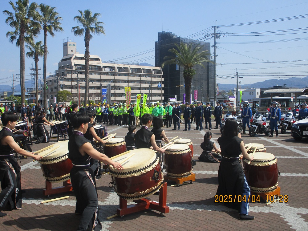 迫力にある演奏などで、春の交通安全県民運動出陣式