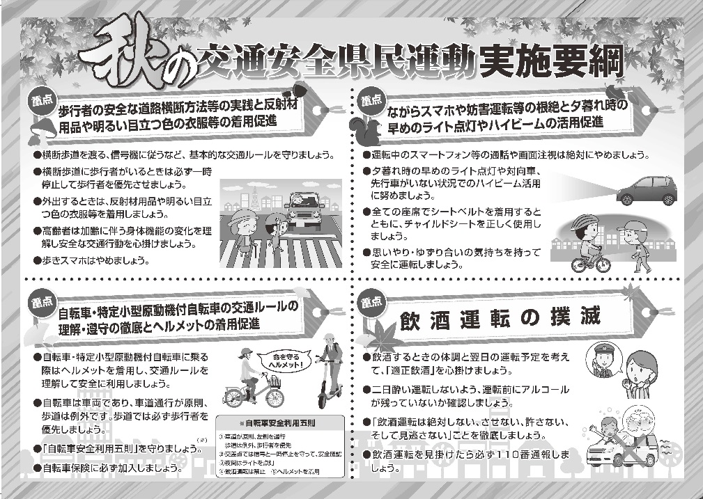 ・ながらスマホや妨害運転等の根絶と夕暮れ時の